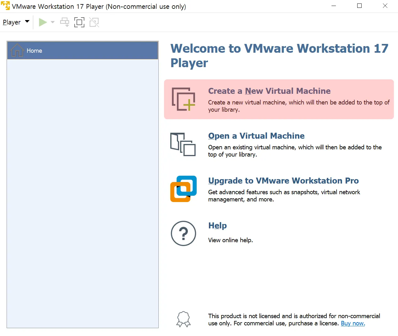 본격적으로 설치하겠습니다. Create a New Virtual Machine을 진행해주세요.