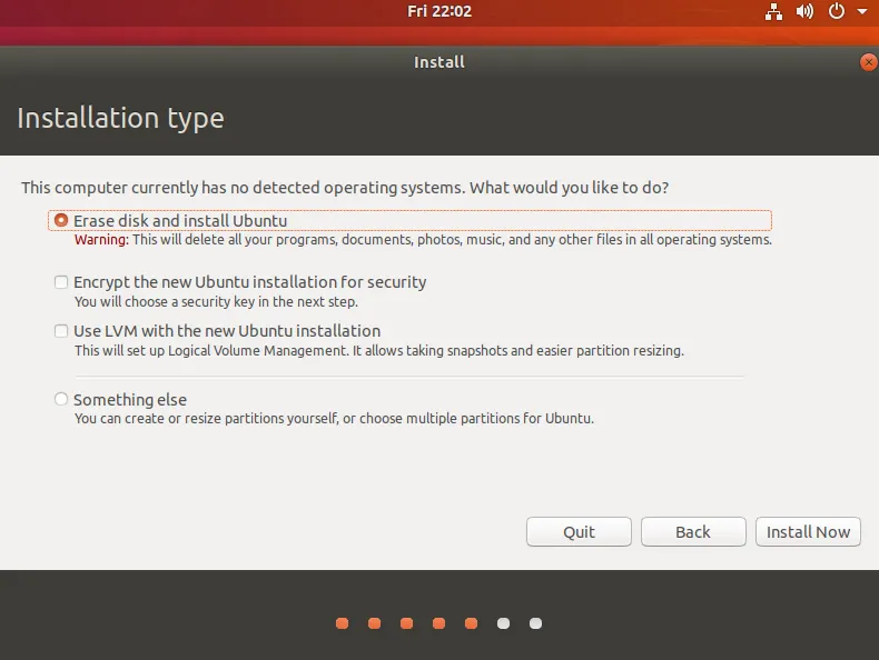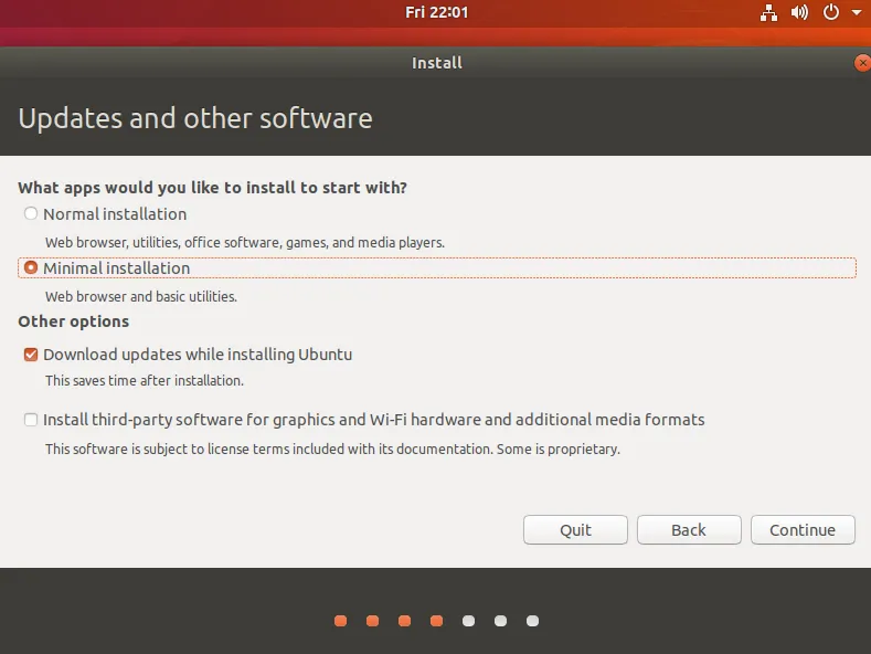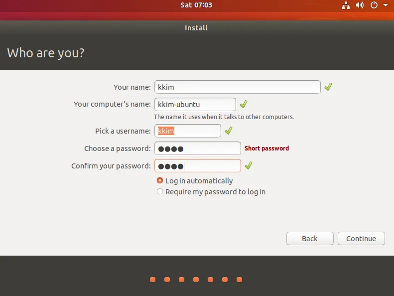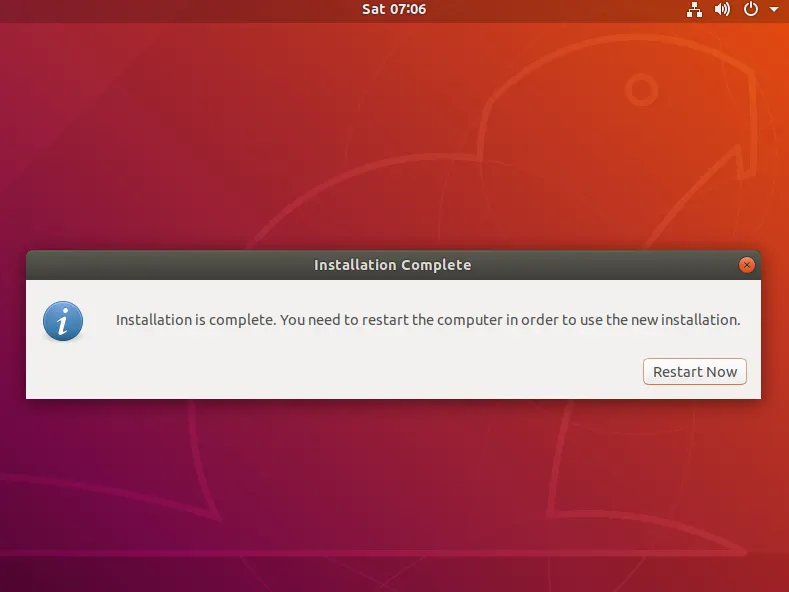 이후 평범하게 우분투를 설치하시면 됩니다. 저는 Minimum version setting과 id/password 외에는 따로 설정한 부분이 없습니다. 설치 완료 후 재시작 안내 메시지가 뜹니다!