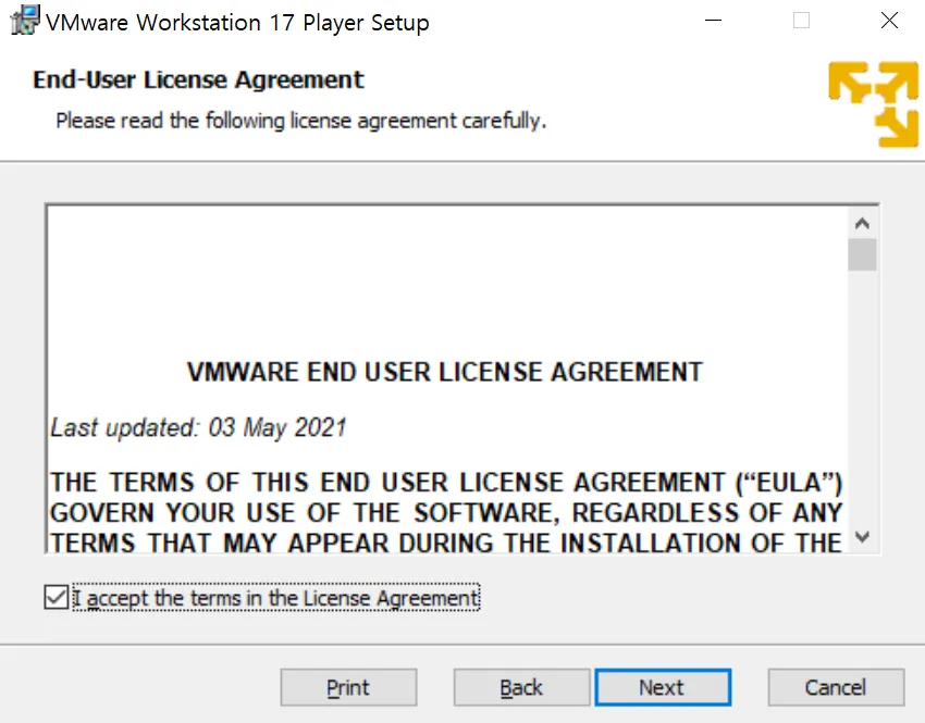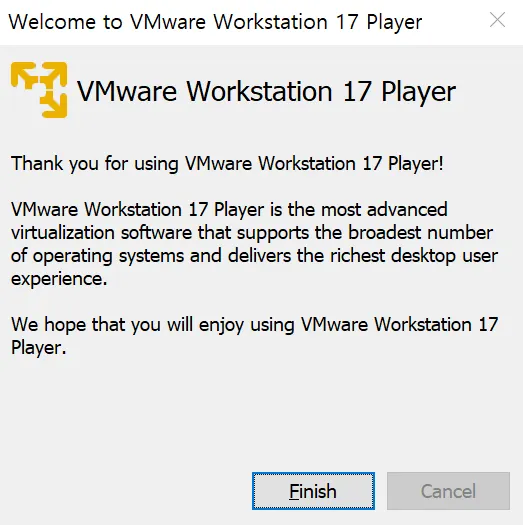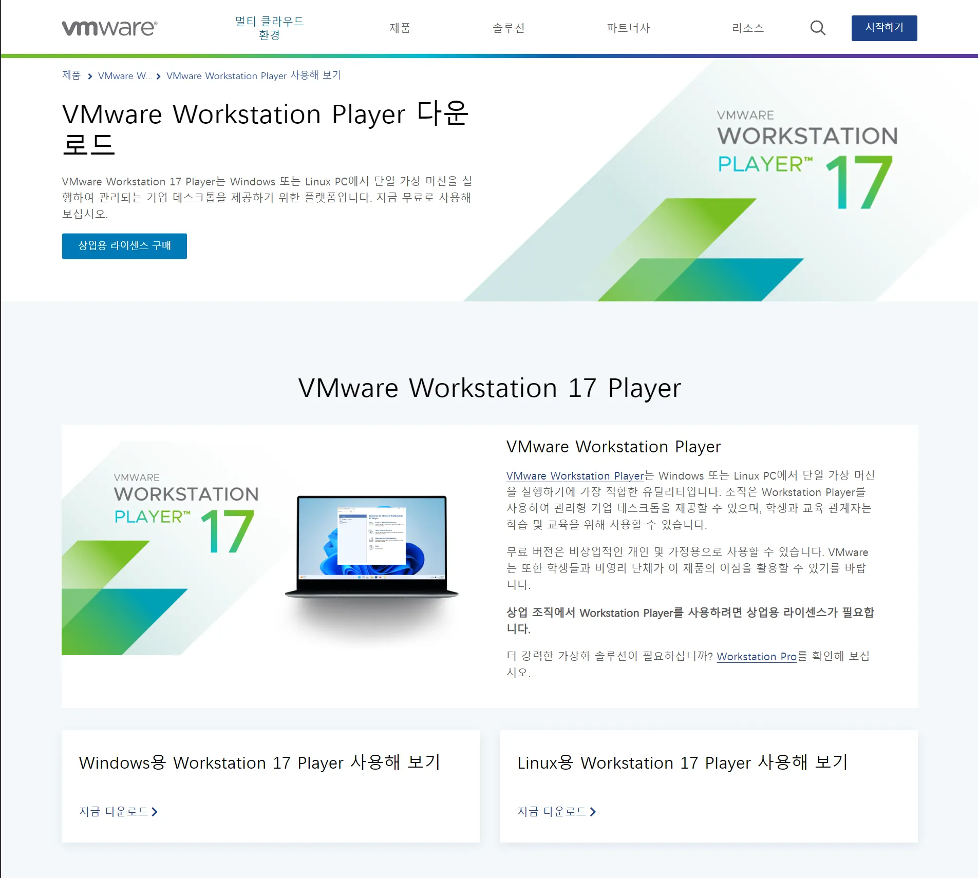 밑의 링크로 이동하여 VMWare 설치 파일을 다운받아주세요.
