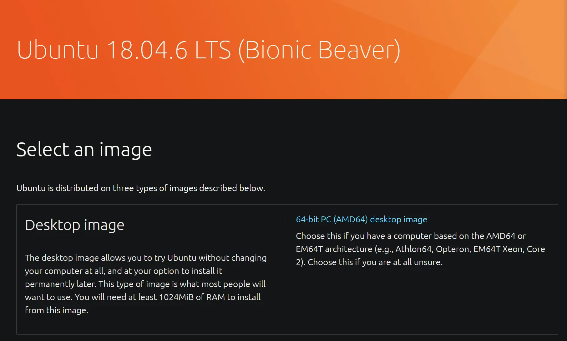 위의 사이트에 접속하여 ubuntu 18.04의 이미지 파일(.iso)을 다운받아주세요.