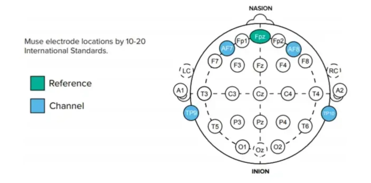 이 배치는 10-20 System에서 유래하였습니다. 이는 다양한 주제에 걸쳐 EEG 결과를 비교하기 위해 개발된 표준화된 테스트 메소드입니다.
