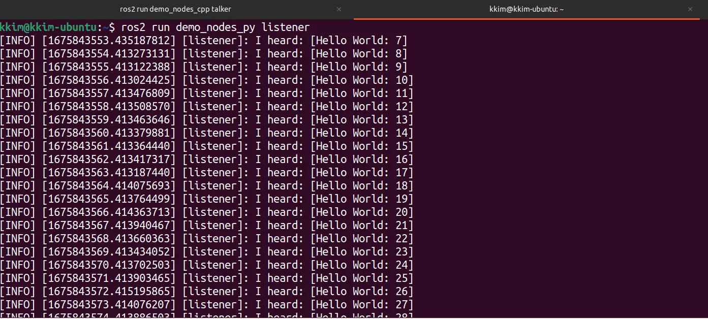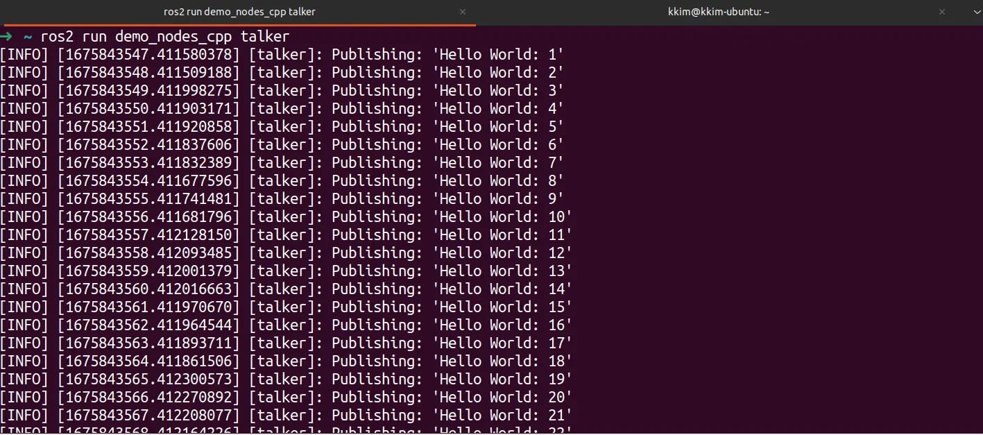 이제 Talker - Listender 예제를 통해 정상적으로 작동하는지 확인해보겠습니다.