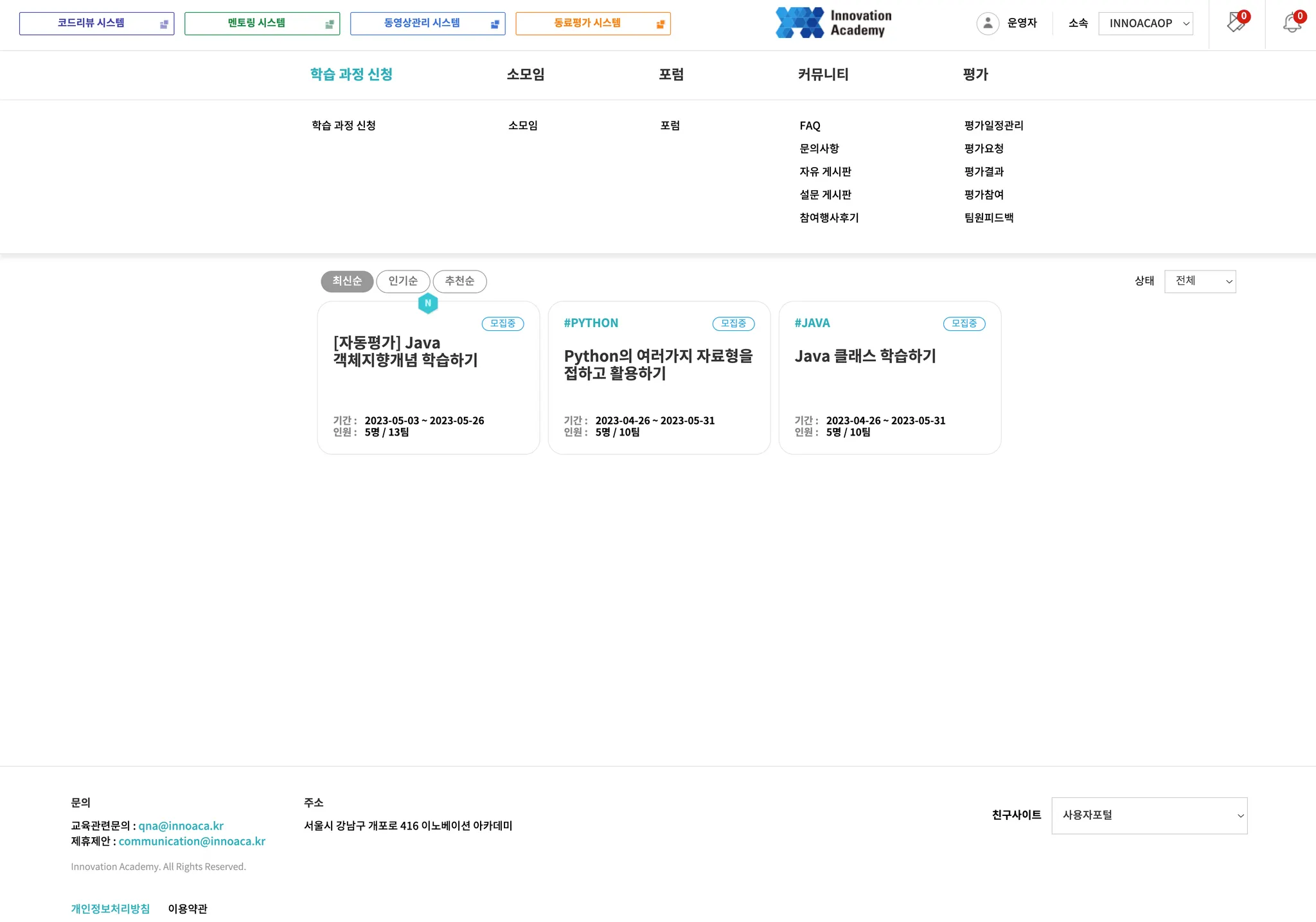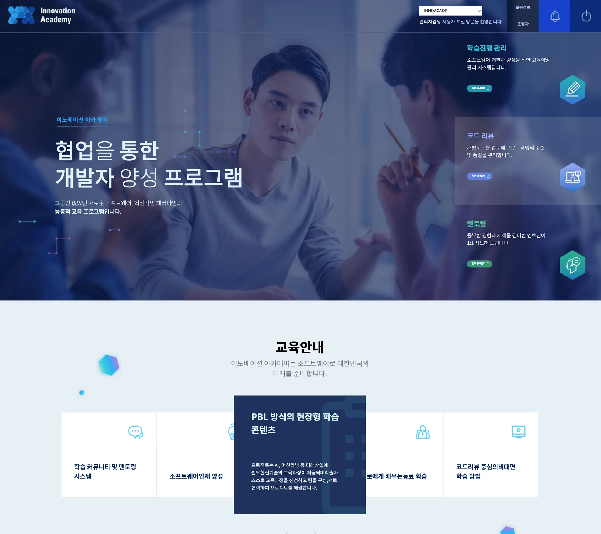 홍보자료와 메인페이지가 섞여 있으니 학습자 입장에서 필요없는 정보가 많아 불편합니다.