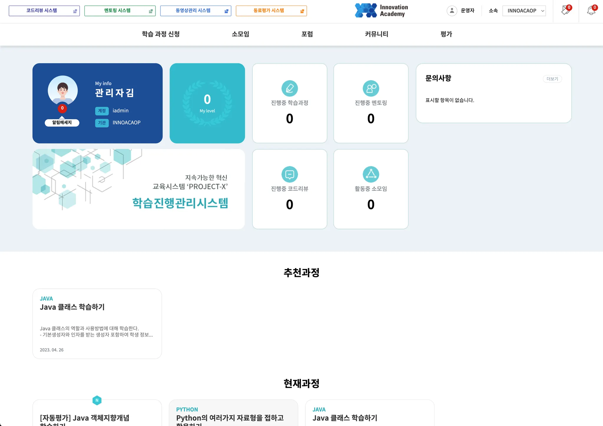 추천과정&현재과정, 학습 상태 박스를 하나로 합치고 메인 페이지에 두번째 네비바 링크들을 집어넣는 편이 사용자 입장에서 가시성이 좋을 것 같습니다.